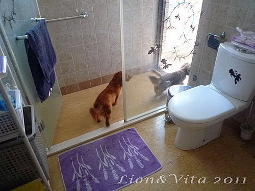先是兩隻全趕進浴室,縮小他們活動範圍,因為狗蝨會跳到周邊環境裡。