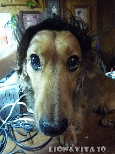 耳朵毛比較短的來旺葛格就沒辦法戴假髮